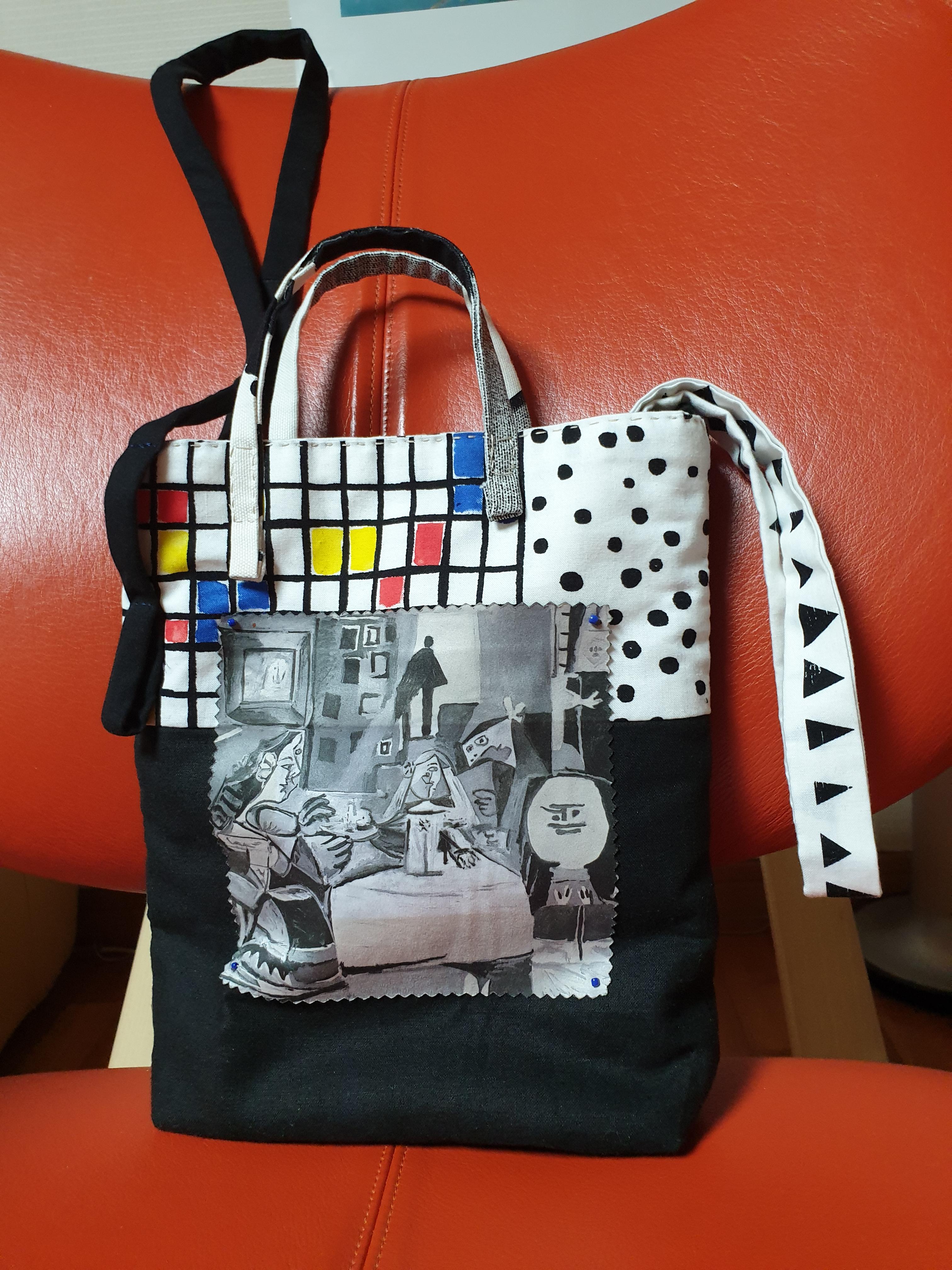 검정천이 충분하지 않아 그동안 망설이다가 다른 천과 이어붙여 만들어보기로 했다. micro fiber cloth를 붙이고 천에 색칠도 해 나름 예쁜 가방이 되도록 정성을 쏟았다.