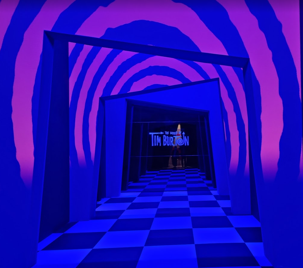 팀 버튼의 고향, 캘리포니아의 버뱅크(Burbank)는 LA 옆에 작고 조용한 시골 동네. 그래도 크리스마스 시즌이 되면 이웃들은 집과 마당을 화려하게 꾸민 모양이다. 붉은 벽면에 눈이 내리고 어릴 때의 기억을 상기시키는 작품들이 우리를 꿈의 세계로 안내한다. 이어지는 푸른 방에는 온갖 청색의 동물들이 둥근벽을 둘러싸고 가운데에서 회전목마가 돌아간다. 동심은 원색적이며 우회하지 않으며 직접적이다.