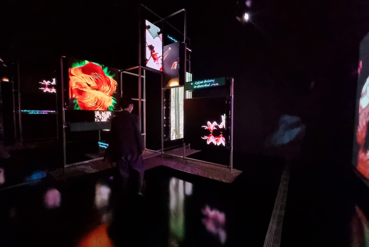 ‹이것이 미래다›는 LED 스크린이 장착된 구조물, ‹파워 플랜츠›로 이뤄져 있다. 영상에서는 신경 네트워크가 내러티브를 담당하고 있다고 하는데 헤자라는 쿠르드족 여인의 이야기를 중심으로 전개되고 있다 한다. 두 번째 방에 구성된 ‹파워 플랜츠›는 인공지능과 예측 알고리즘, 미래 예견 프로그램의 도움을 받아 만화경 같은 컬러풀한 식물 이미지를 연속적으로 재생해 내는 구조물이 설치되어 있다. 디지털 기술로 어둠 속에서 연출해 내는 꽃이라는 이미지의 다양한 아름다움에 우리는 놀랄 뿐이다.